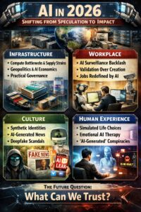 Ultimately, these predictions suggest that AI’s most profound impact in 2026 is not intelligence itself, but trust: who we believe, how we verify reality, and what we outsource, economically, socially, and emotionally, to machines.