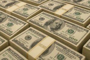 AI systems overseeing banks and digital money, symbolizing artificial intelligence control over modern financial systems